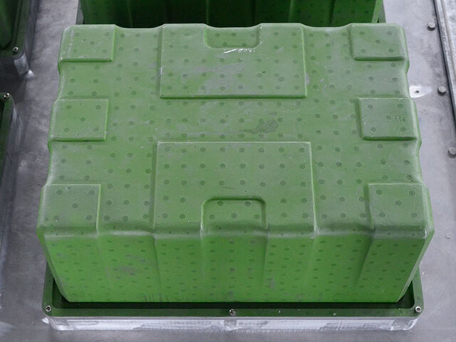 La parte di polistirolo espanso viene lasciata raffreddare e stabilizzare all'interno dello stampo.